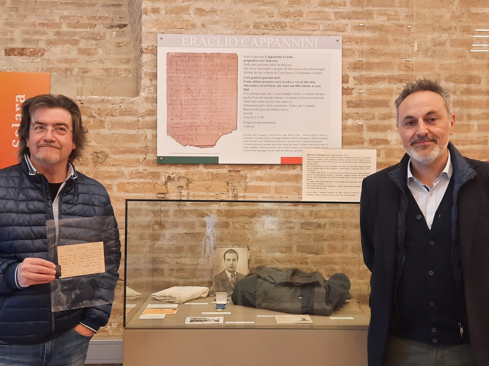 Un nuovo e ulteriore ricordo della importante figura del partigiano jesino Eraclio Cappannini andrà ad aggiungersi agli altri cimeli a lui appartenuti e donati dai suoi familiari a Jesi. Nello specifico: i vestiti che il giovane partigiano indossava la mattina della fucilazione, il panno per asciugargli il volto dopo la morte, l’originale della lettera scritta il giorno prima, la medaglia d’argento al Valor Militare consegnata postuma, foto e documento di identità.