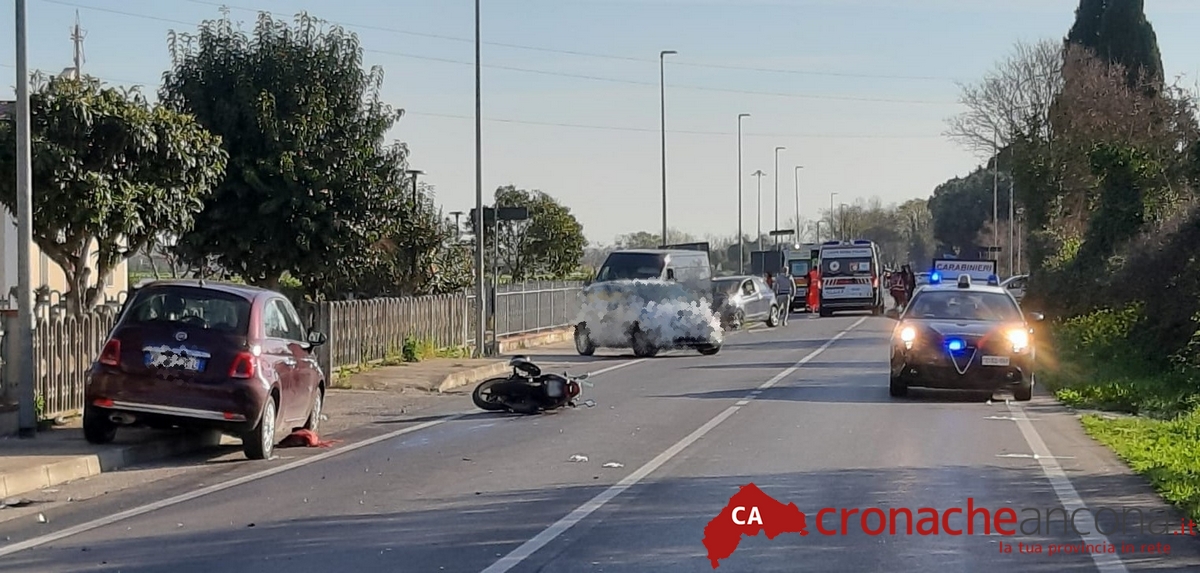 Schianto tra un’auto e una moto: centauro grave con Icaro a Torrette