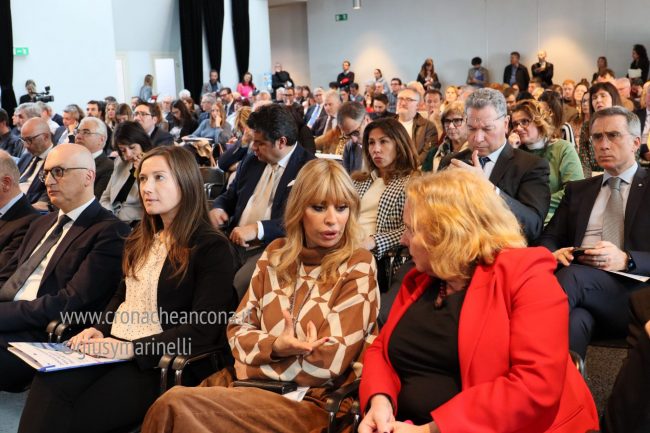 Presenti al convegno anche le europarlamentari Beatrice Covassi e Alessandra Mussolini. Per quest’ultima, che fa parte della Commissione per il commercio internazionale, «l’Europa è una madre generosa, non una matrigna. L’unica cosa è che delle volte va bacchettata». Alla tavola rotonda con la direttrice generale di Confindustria Marche, Paola Bichisecchi, il segretario generale di Confartigianato Marche, Gilberto Gasparoni, e il segretario generale Cisl Marche, Marco Ferracuti, ha parlato di transizione ecologica: «All’interno del Ppe (Partito popolare europeo) – ha raccontato –, Svezia e Finlandia quasi stanno accettando la transizione ecologica perché, con il nucleare, sono a zero emissioni. La scelta fatta dall’Italia contro il nucleare ha delle conseguenze nel lungo termine che stiamo pagando». «L’Europa – ha concluso – è una famiglia dove è difficile conciliare varie posizioni. L’Italia deve fare squadra perché, mentre noi litighiamo, la Germania vince».
