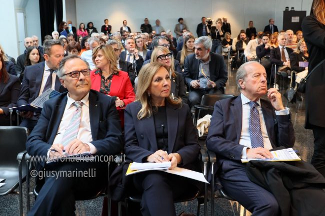 Presenti al convegno anche le europarlamentari Beatrice Covassi e Alessandra Mussolini. Per quest’ultima, che fa parte della Commissione per il commercio internazionale, «l’Europa è una madre generosa, non una matrigna. L’unica cosa è che delle volte va bacchettata». Alla tavola rotonda con la direttrice generale di Confindustria Marche, Paola Bichisecchi, il segretario generale di Confartigianato Marche, Gilberto Gasparoni, e il segretario generale Cisl Marche, Marco Ferracuti, ha parlato di transizione ecologica: «All’interno del Ppe (Partito popolare europeo) – ha raccontato –, Svezia e Finlandia quasi stanno accettando la transizione ecologica perché, con il nucleare, sono a zero emissioni. La scelta fatta dall’Italia contro il nucleare ha delle conseguenze nel lungo termine che stiamo pagando». «L’Europa – ha concluso – è una famiglia dove è difficile conciliare varie posizioni. L’Italia deve fare squadra perché, mentre noi litighiamo, la Germania vince».