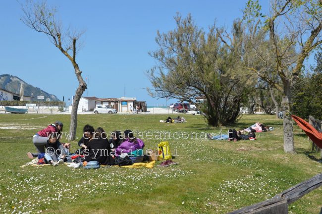 Nonostante le temperature non proprio primaverili ma sotto un sole gradevole fin da stamattina turisti e famiglie con bambini hanno affollato l’arenile di Portonovo per un pic nic, per una semplice passeggiata o per sedersi a tavola nei locali già aperti anche solo per gustarsi un aperitivo in compagnia degli amici.