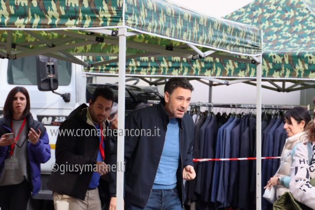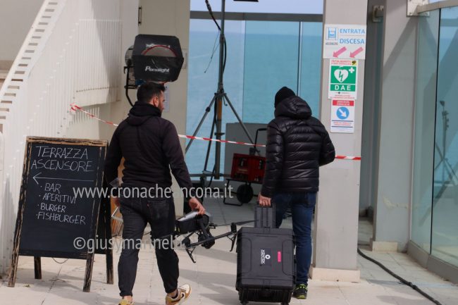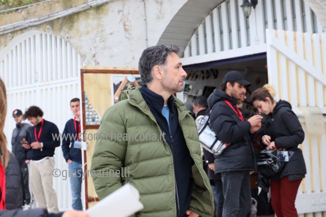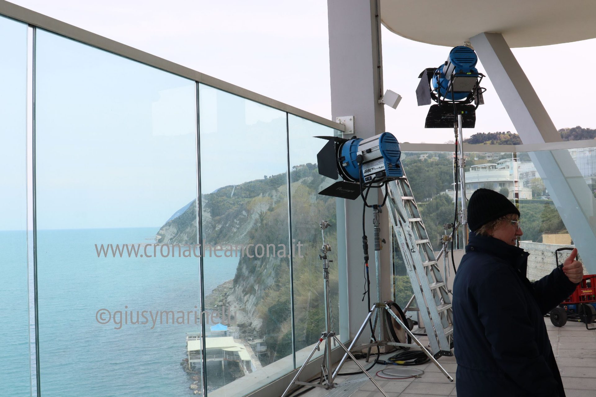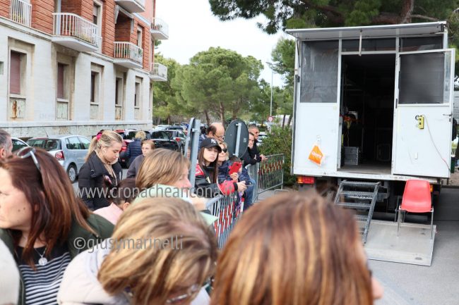 Prima è rimasto chiuso per circa un’ora e mezza nei camerini, ricavati nei camion della produzione e parcheggiati davanti al Passetto di Ancona.