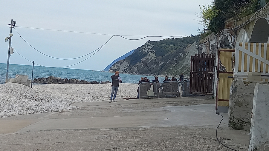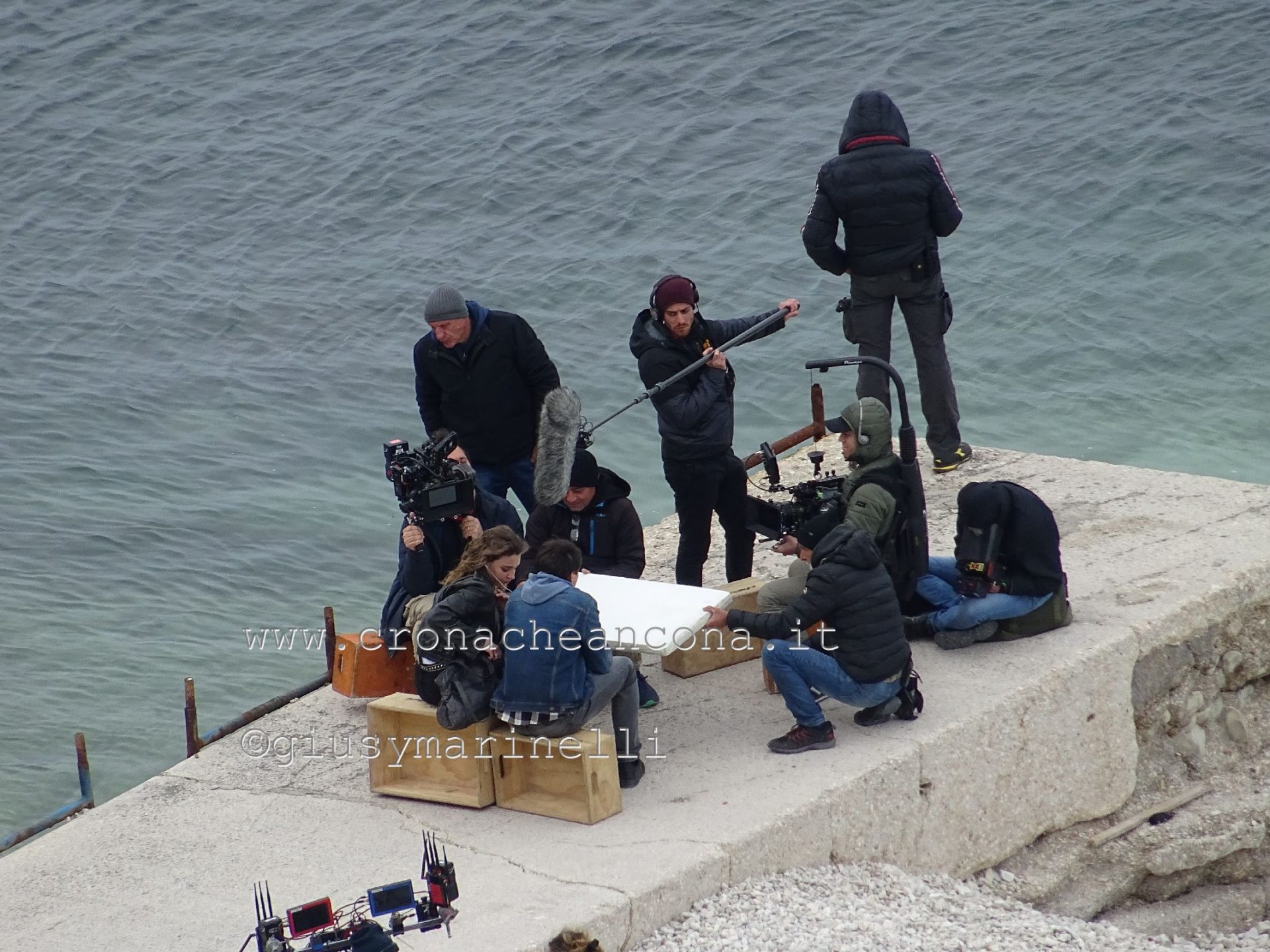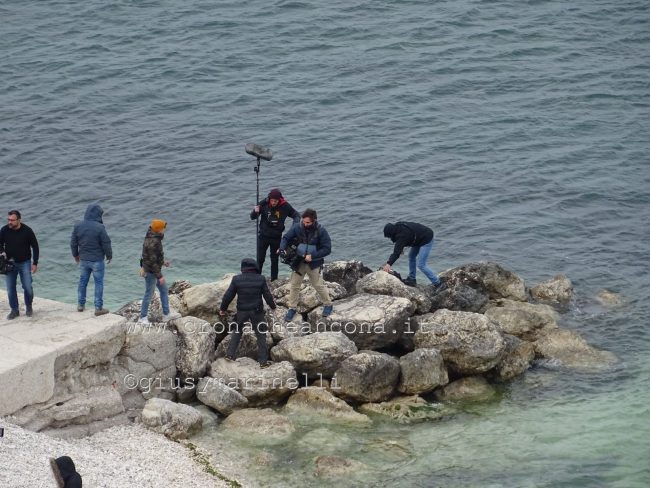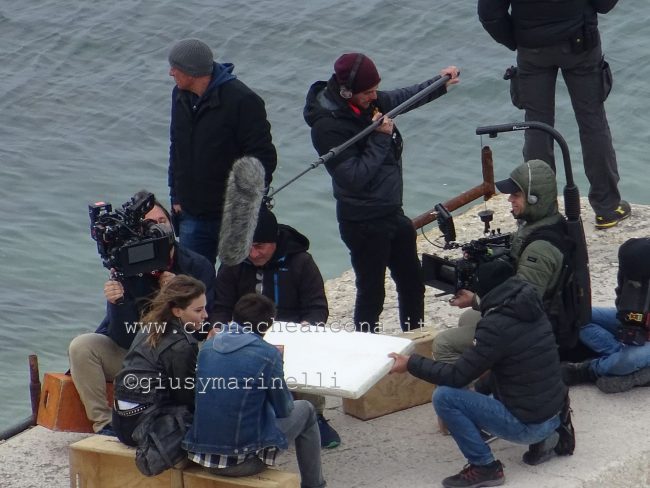 L’attesa, si diceva. Quella che ha spinto più di tremila persone a presentarsi al casting per le comparse. La produzione ne cercava circa trecento, ma se ne sono candidati dieci volte tanti. Per scremare gli aspiranti attori per un giorno, Lux Vide si è avvalsa della collaborazione di Guasco Srl, società di produzione cinematografica made in Ancona. Alle 14, sulla spiaggia del Passetto sono arrivati i primi curiosi. Non molti, per la verità. Tempo e orario, di certo, non incoraggiavano. Quelli che hanno sfidato il vento hanno assistito alla preparazione del set, con le grotte aperte per l’occasione. E all’andirivieni di macchinari e attrezzature varie. Fino a che i macchinisti si sono piazzati sulla piattaforma di cemento sul mare e, al grido «Azione», il brusio di sottofondo ha lasciato spazio al silenzio. E a un meccanismo rodato, in cui ognuno sa che fare, come farlo e quando farlo.