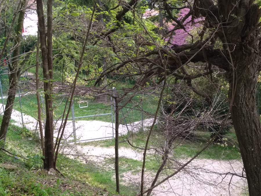 L’ingresso dello sgambatoio del Parco Silvestri di Osimo, che si trova nei giardini sotto alle mura di via Cinque Torri (zona ospedale)