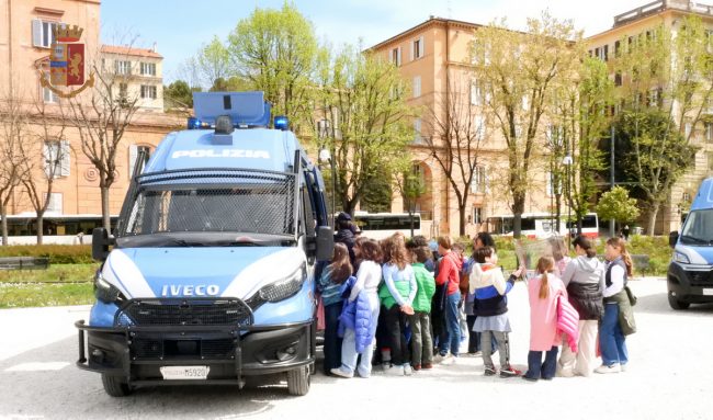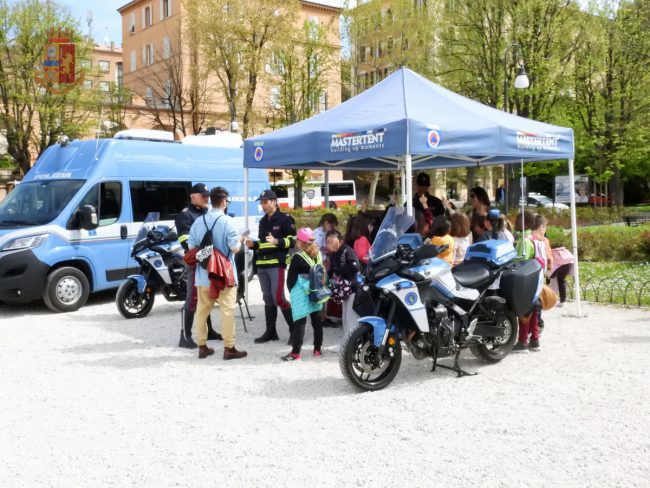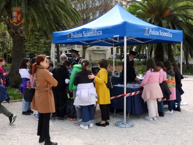 Nel corso della mattinata in piazza Cavour personale della Polizia di Stato ha ricevuto i giovani studenti degli istituti scolastici cittadini, ai quali sono stati spiegati i compiti e le specifiche competenze di ciascuna specialità della Polizia di Stato: Polizia Scientifica, Stradale, Postale e delle telecomunicazioni, Ferroviaria, di Frontiera marittima ed Aerea, Cinofili, Artificieri.