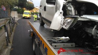 Il giovane autista è stato trattato sul posto e accompagnato al pronto soccorso di Torrette.
