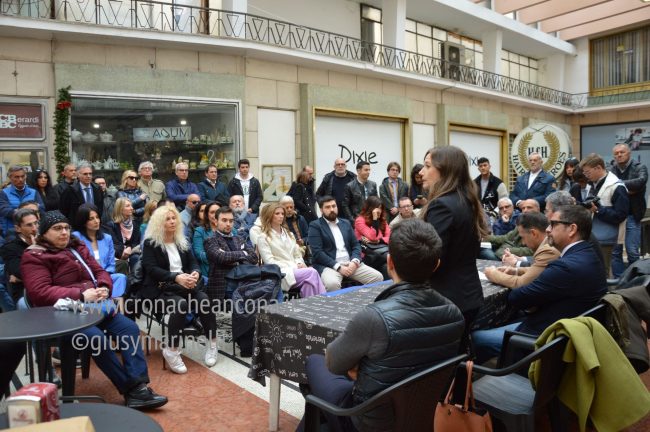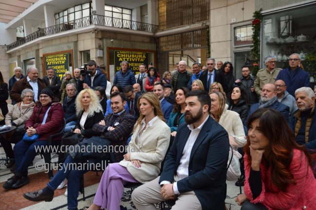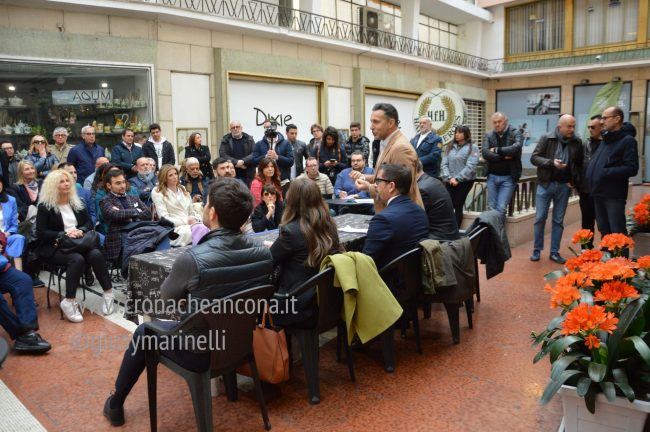 «Voglio darvi la visione in cui siete» afferma rivolgendosi anche lui ai candidati il capogruppo in consiglio Regionale Carlo Ciccioli «Perché nessuno di voi 32 è qui per caso. Abbiamo composto una lista comprensiva di ogni età e categoria della città proprio per rappresentarla al meglio e farci carico dei relativi problemi e delle relative richieste». «I sondaggi – rivela poi Ciccioli – ci danno al 30% nazionale e 28% locale è vero, ma alla fine conteranno i voti che riuscirete a portare voi. Perché occorre rilanciare l’orgoglio anconetano. Basta con l’Ancona ‘moscia’ della Mancinelli». L’ultimo concetto è tornato buono all’ex onorevole per svelare che la location della conferenza stampa non è di certo stata scelta a caso: «La galleria Dorica fu costruita nel dopoguerra dalla ditta Almagià. La stessa che fece il primo tratto del canale di Suez. Per oltre 150 anni questa città è stata la capitale dell’edilizia. E noi così rivogliamo Ancona: protagonista in Italia e nel mondo».