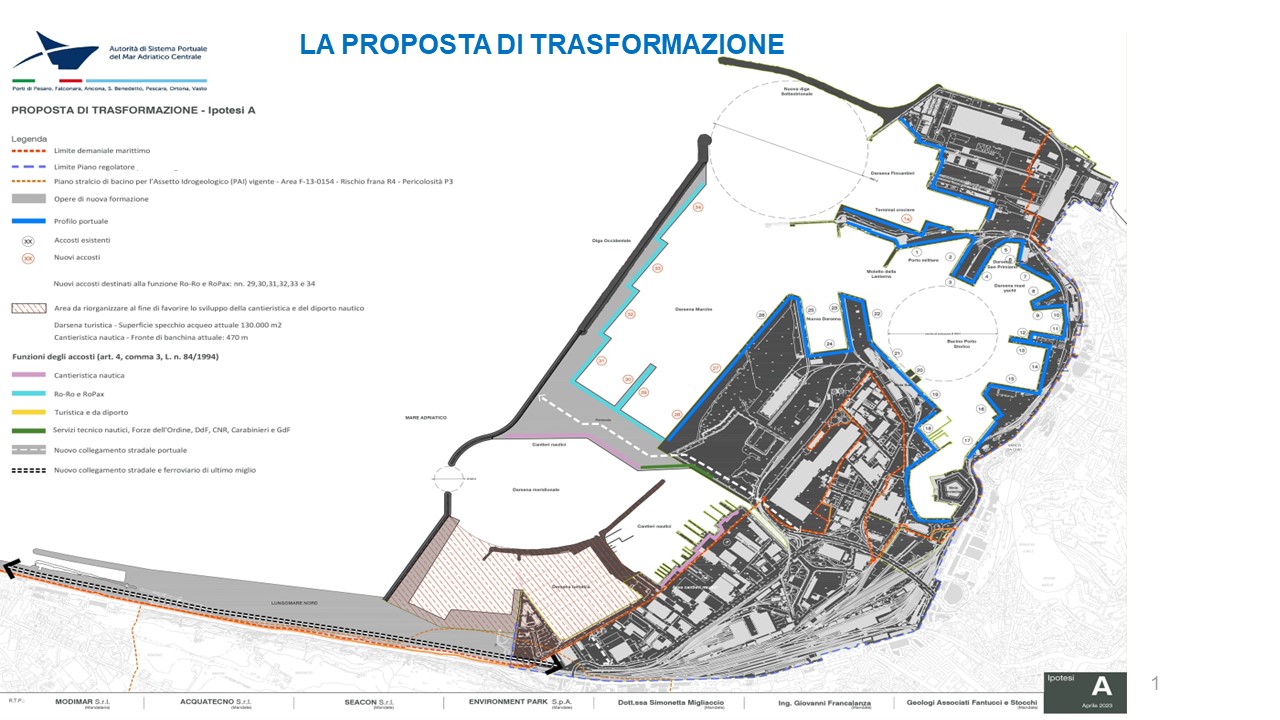 «La proposta dell’Autorità di sistema portuale – è stato reso noto – è di realizzare una penisola nel porto commerciale, tra le banchine dedicate a questi traffici, e la diga foranea. La penisola e lo specchio acqueo antistante – hanno proseguito – saranno destinati ad accogliere il traffico traghetti Ro–Ro e Ro–Pax, sia in risposta alla crescente domanda di accosti che connota questa tipologia di traffico nel porto di Ancona, sia per garantirne il progressivo allontanamento dal porto storico. Il valore aggiunto del progetto – è stato sottolineato – è di avere sei nuovi accosti per le Autostrade del Mare, dotati di adeguata lunghezza di banchina e dimensioni di piazzale, raccordati alla viabilità stradale e alla rete ferroviaria e realizzati in un contesto di sviluppo sostenibile delle infrastrutture, parte del Polo intermodale delle Marche».