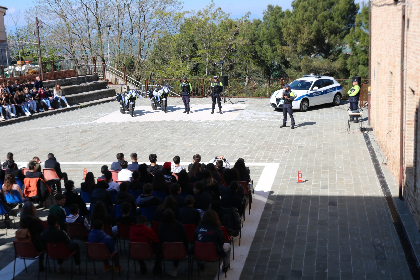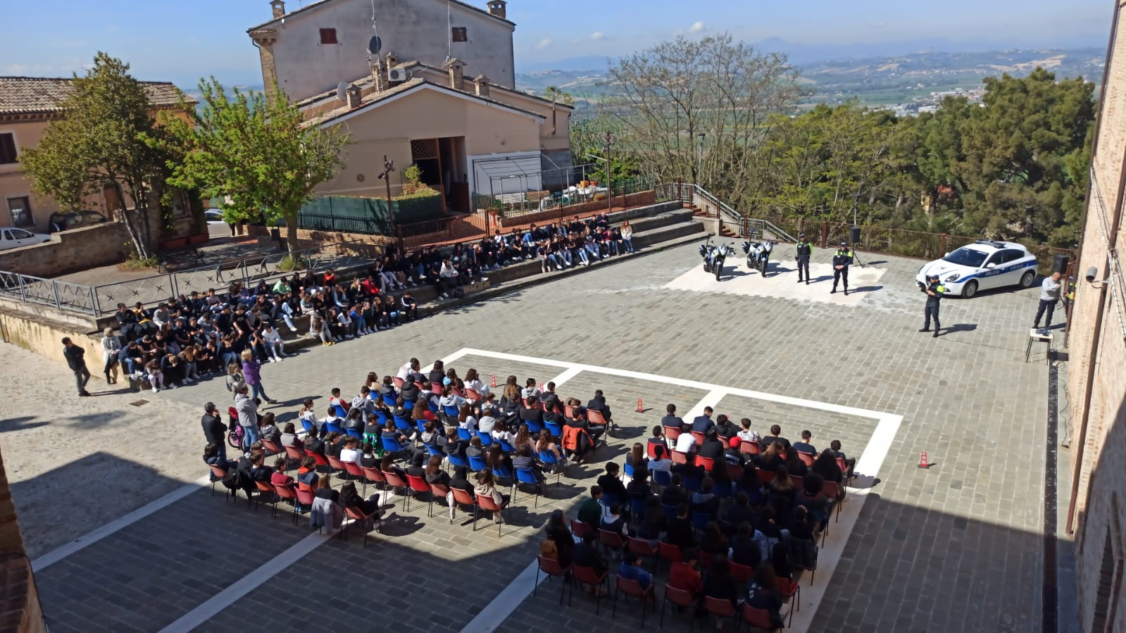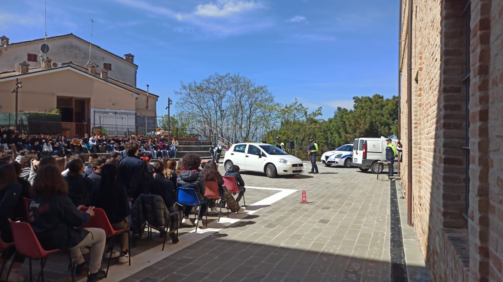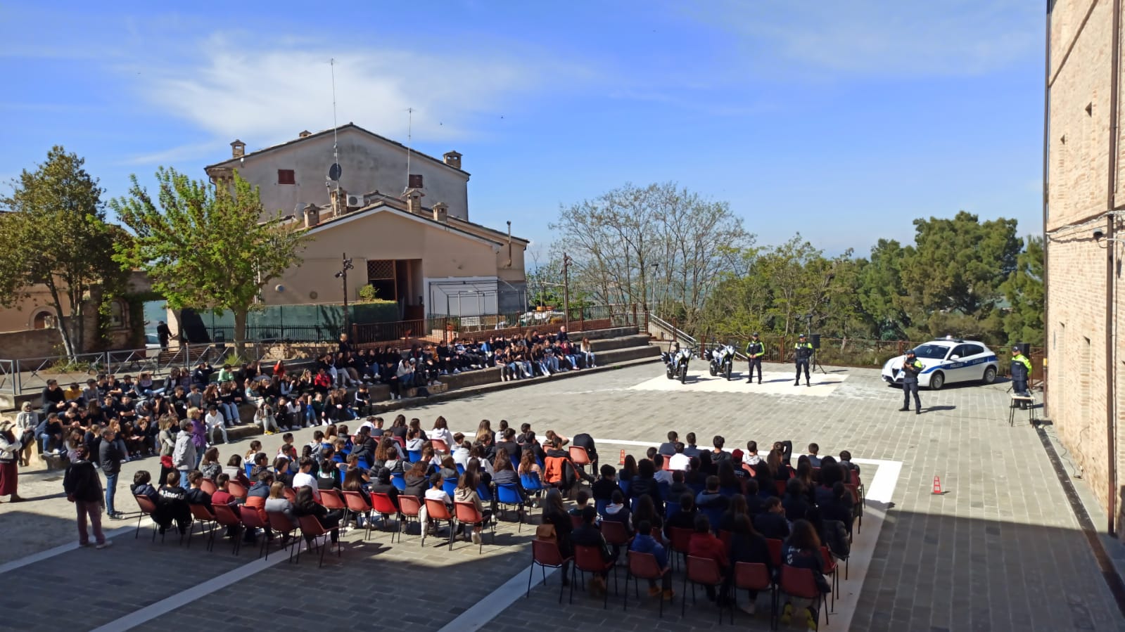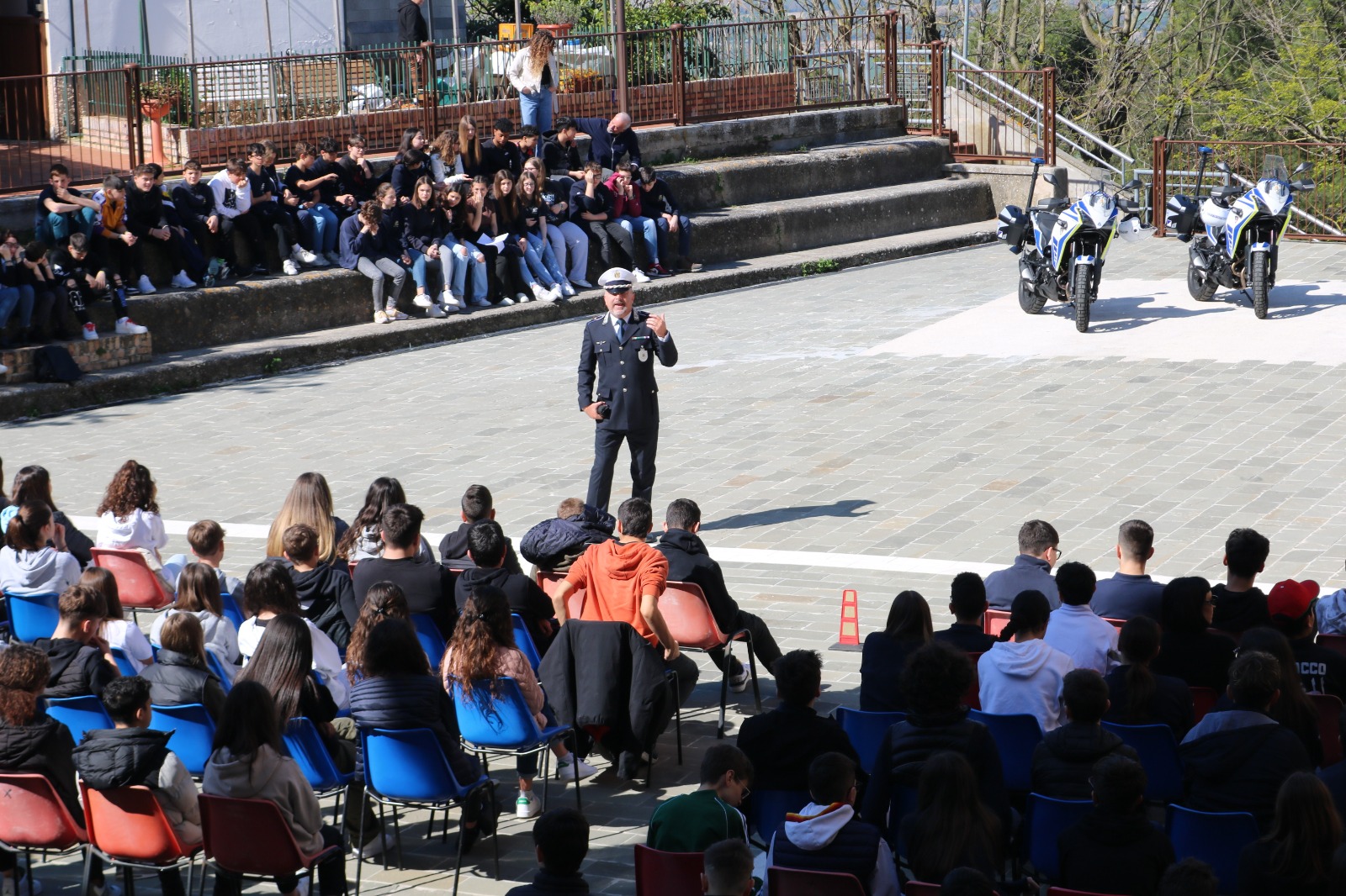 Dopo gli applausi a scena aperta di ragazzi e docenti in evidente visibilio, è iniziata una serie infinita di domande da parte degli studenti la cui curiosità, perspicacia ed attenzione hanno suscitato vivo apprezzamento da parte di tutti coloro che si sono impegnati da mesi in questo importante progetto che ha visto un meraviglioso e proficuo sodalizio tra istituzioni. La giornata si è conclusa con le parole del comandante Tondini che ha voluto complimentarsi con i ragazzi per la prova di maturità, educazione e sensibilità verso temi così importanti e, talvolta, di drammatica attualità anche nelle nostre realtà, per poi ringraziare dirigenti scolastici e tutto il corpo docente per l’immane lavoro posto in essere, spesso lontano dai riflettori, a garanzia e tutela di queste nuove generazioni, ed infine, ma non certo per importanza, un sentito ringraziamento lo ha voluto rivolgere agli ispettori Petroselli e Gambini, e agli agenti Olivieri e Paccapeli che hanno preso metaforicamente per mano questi giovani cittadini accompagnandoli in un entusiasmante percorso di legalità i cui frutti di rinnovato senso civico sono già visibili agli occhi di tutti.
