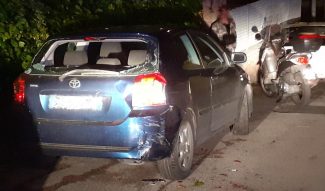 Nell’impatto con la vettura, il ragazzo ha sfondato il lunotto del bagagliaio finendo con parte del corpo all’interno del mezzo.