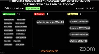 La proposta della Fondazione Primo Maggio, gestore dei beni immobili dell’ex Pci nella provincia di Ancona, di donare l’edificio all’ente, a patto che ne venga mantenuta la valenza pubblica e sociale, è stata approvata ieri sera del Consiglio comunale con 16 voti favorevoli della maggioranza di centroinsitra, insieme a quelli dei consiglieri d’opposizione di Pof e M5S, il no del consigliere della Lega, Alberto Maria Alessandrini Passarini e l’astensione del gruppo delle Liste civiche (presenti Sandro Antonelli, Lorenzo Bottegoni, Stefano Simoncini e Matteo Sabbatini).