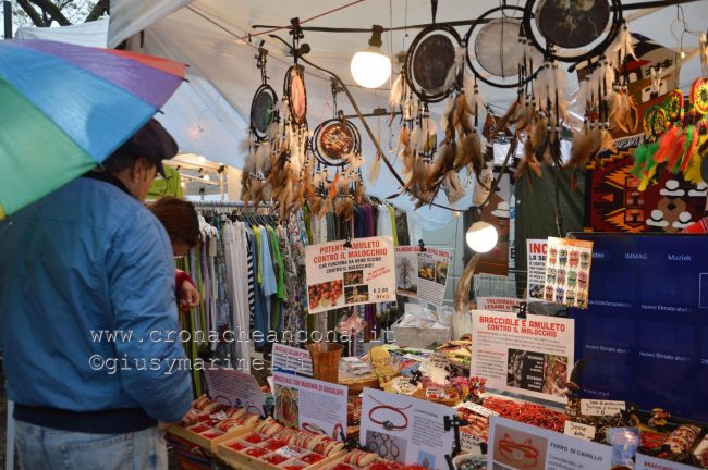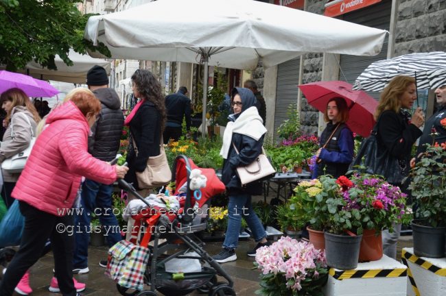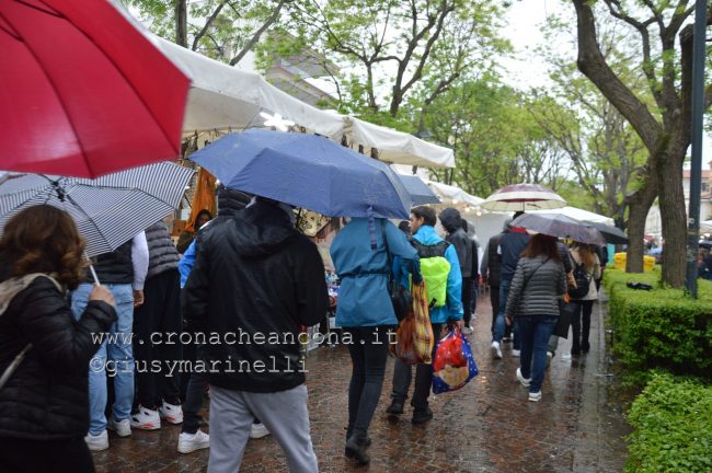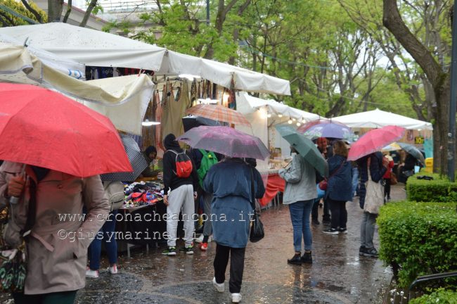 Nelle prime ore del pomeriggio ha iniziato poi a piovere ma ciò non ha affatto creato alcun tipo di fuggi-fuggi anzi: aperti gli ombrelli, si è proseguito in un fitto passeggio proseguendo l’avanti e indietro tra le bancarelle, alla ricerca di qualcosa da portare a casa.