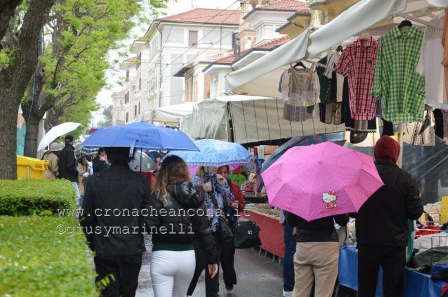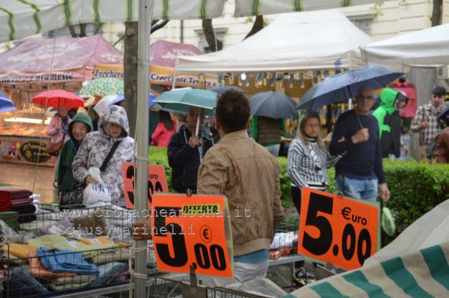Alcuni venditori, quando la pioggia si è fatta più fitta intorno alle 18, sono stati costretti a coprire la propria merce, soprattutto se si trattava di vestiario.