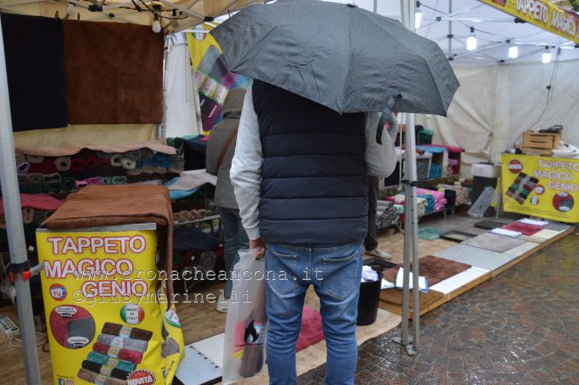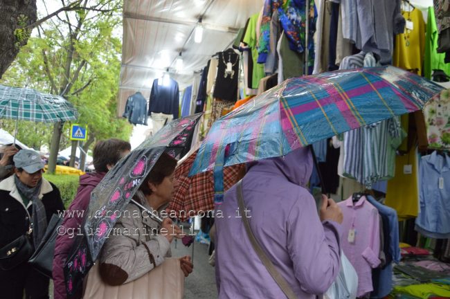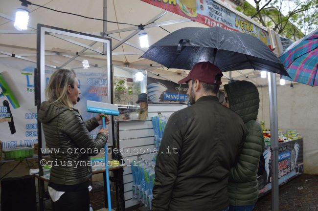 ANCONA - Tantissimi gli anconetani che si sono riversati al viale e in centro per questo primo giorno di bancarelle e stand. Armati di ombrelli, hanno sfidato il meteo