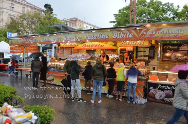 Nemmeno la pioggia ha fermato la prima giornata della Fiera di San Ciriaco, dopo l’anticipo di ieri, in piazza Pertini con lo street food.