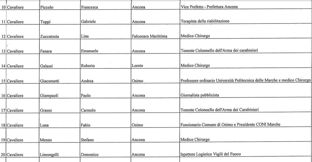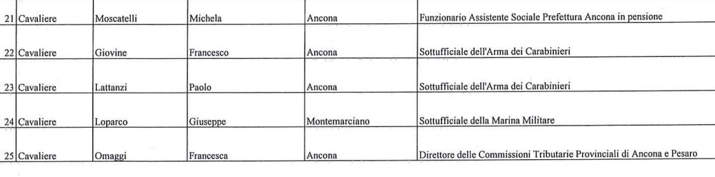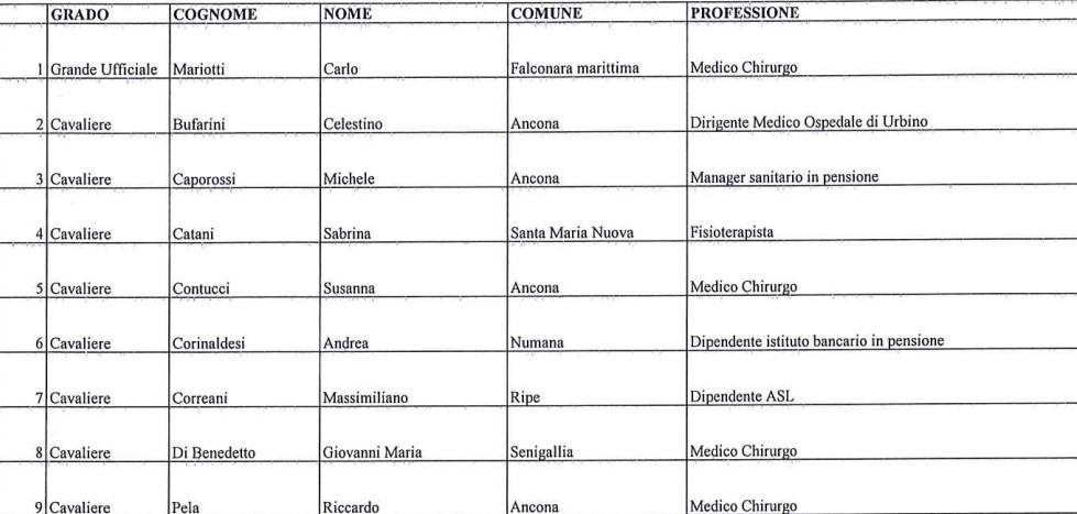 Sono 25 (un Grande Ufficiale e 24 Cavalieri) i cittadini della provincia di Ancona a cui il presidente della Repubblica, Sergio Mattarella, ha conferito le onorificenze dell’Ordine “Al merito della Repubblica Italiana”, su proposta e segnalazione del prefetto di Ancona Darco Pellos, ottenendo l’alto riconoscimento per essersi distinti per impegno nel sociale, nel volontariato e nella propria professione.