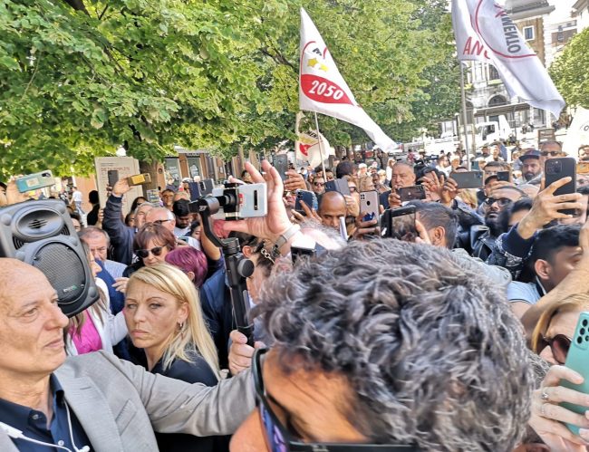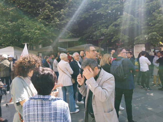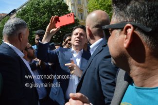 Oltre 300 i presenti, giunti da tutte le Marche. Un esercito pacifico che ha finito con lo scortare quello che per loro è ancora il ‘Presidente’ e non solo del partito politico, ritenendo i suoi due governi indimenticabili. Nessun facinoroso o malintenzionato da queste parti al contrario di quanto accaduto due giorni fa. Anzi. Tale è stato l’affetto dei presenti che l’ex presidente del Consiglio ha faticato a raggiungere prima piazza Roma nel lato dell’ex Cobianchi. E la postazione dall’altra parte della piazza, zona Vodafone per intenderci, dove era stato allestito un mini palchetto, poi. Un tragitto inferiore ai 100 metri eppure percorso in più di 10 minuti, visto il bagno di folla e la voglia di stringere la mano e fare domande che avevano molti dei presenti, i quali hanno sommerso Conte impedendogli di camminare con passo spedito.