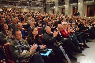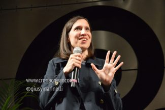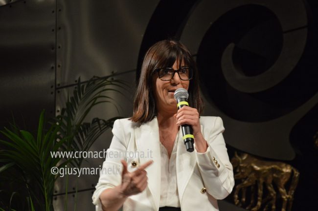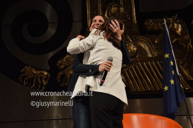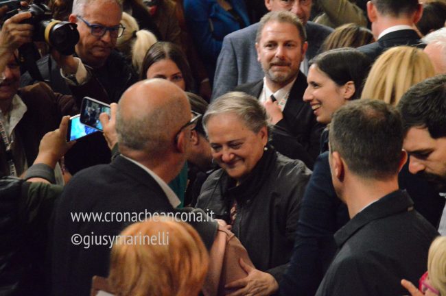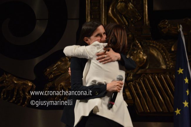L’ingresso è trionfale, con tanto di musica dei Coldplay. Strette di mano, saluti. Selfie e tanti sorrisi accompagnano la traversata del corridoio che conduce al palco, dove ad attenderla ci sono già Ida Simonella e Chantal Bomprezzi.