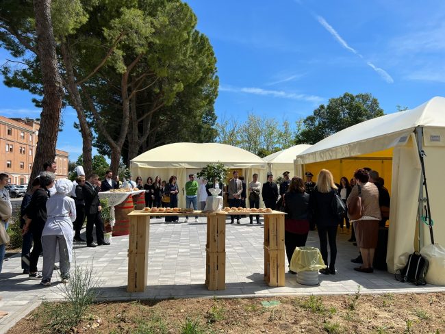 Un’intera area è stata bonificata per lasciare spazio a un vero e proprio orto, dove verranno coltivati prodotti da utilizzare nelle cucine. Sono stati creati inoltre spazi di riflessione per la didattica in ambiente naturale con ben tre “aule verdi”: gazebo trasformati in aule digitali completamente equipaggiate.