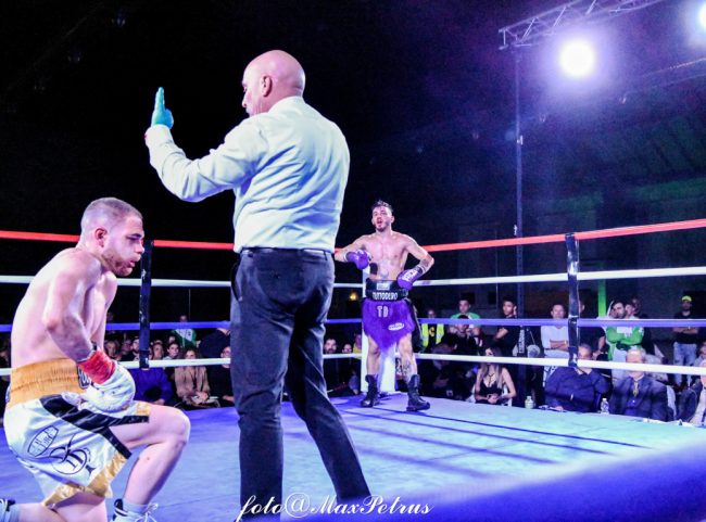 Occhinero è andato anche in ginocchio, subendo un conto di 8. È accaduto al settimo round quando è stato colpito al fegato. Incitato dal tifo ininterrotto e uno scatto d’orgoglio il dorico si è comunque rialzato e ha provato a ribaltare l’esito dell’incontro, senza però riuscirci.