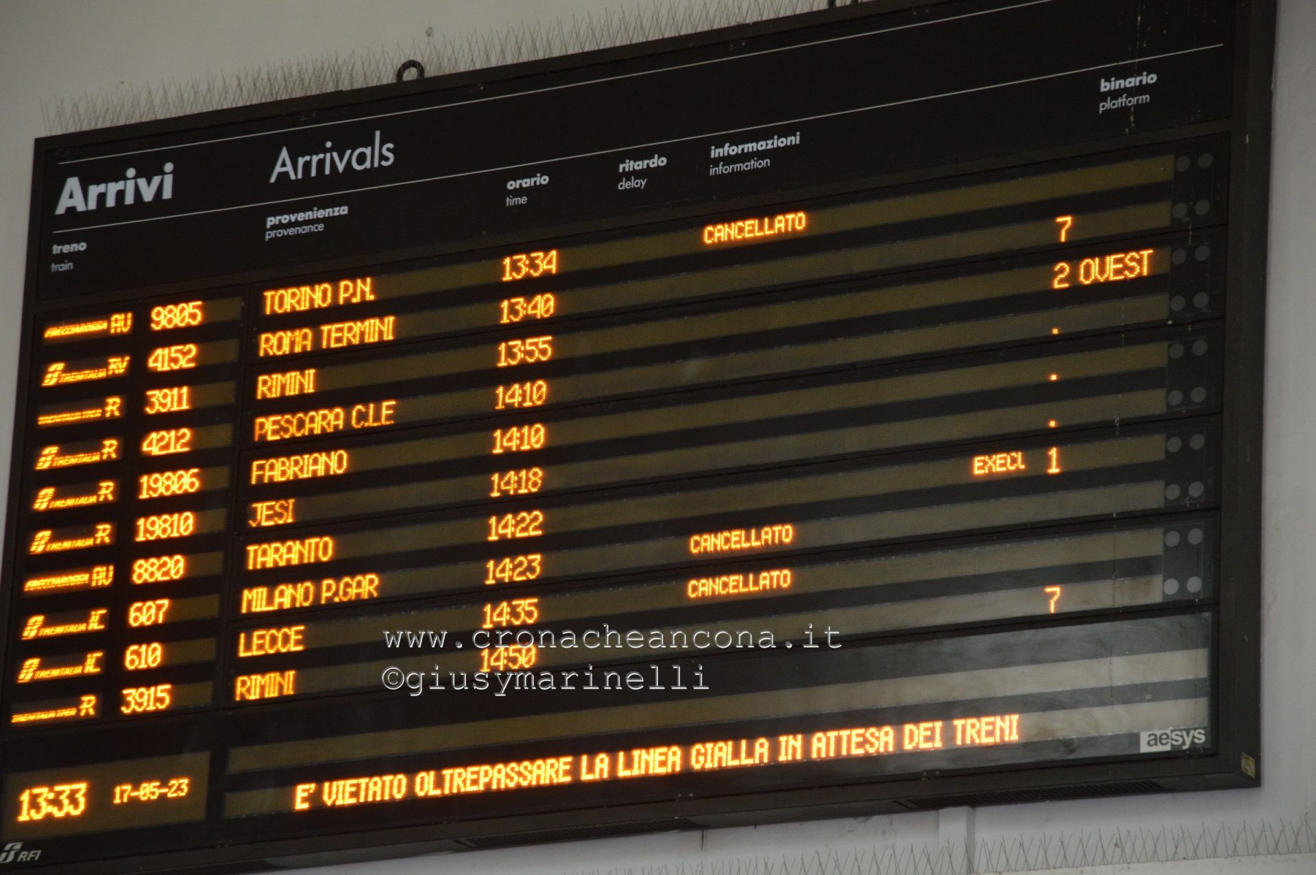 Maltempo, disagi alla stazione ferroviara di Ancona per la cancellazione di molti convogli sulla tratta Adriatica (foto Giusy Marinelli)