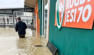 «Le forti piogge che hanno colpito il nostro territorio questa volta non ci hanno risparmiati ed ecco che a malincuore vi mostriamo il nostro club, allagato e pesantemente danneggiato». Così il Rugby Jesi ’70 nel mostrare, dai suoi canali social, le immagini di allagamenti e danni che hanno funestato nei giorni scorsi anche l’impianto da rugby jesino di via Mazzangrugno. «Colpito il cuore del nostro Club – spiega in una nota il presidente, Luca Faccenda – il campo in erba, gli spogliatoi, i locali che ospitano Club House, segreteria, il negozio. Risparmiata, per fortuna, la parte di impianto dove è presente il campo sintetico. Una prima conta parziale del danno ci ha condotti a fare una stima di oltre 20mila euro. Proprio il campo in erba ha subito il colpo maggiore: ci dovremo mettere mano, una volta asportato il limo che lo ha invaso, il terreno diventerà duro. E poi tutto il ripristino dell’impiantistica elettrica e idraulica, mobili e attrezzature informatiche che sono andati persi, la merce in vendita nello store e i prodotti immagazzinati nella Club House».