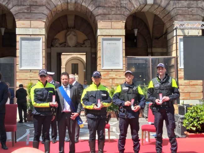 «Fra gli operatori di Polizia locale che si sono distinti per comportamenti o azioni che hanno superato l’ordinario compimento dei propri doveri d’ufficio, anche i “nostri” agenti Daniele Gambini e Michele Buscarini, coraggiosi artefici durante l’inverno di azioni di contrasto ai furti sul territorio che hanno condotto fra l’altro all’arresto di due ladri nonostante il tentativo di fuga, la strenua resistenza e violenza a pubblico ufficiale. – ricorda in una nota il sindaco Roberto Ascani – La presenza di Castelfidardo rappresentata dal comandante Paolo Tondini, ha ricevuto poi l’encomio regionale nelle persone degli agenti Giancarlo Brandoni, Michelangelo Caporaletti, William Galeassi, Roberto Olivieri, Luca Paccapeli, Corrado Petroselli, Roberto Santarelli e Yuri Galeazzi, la cui attività investigativa ha consentito l’individuazione dei sei autori del lancio di pietre dal Parco del Monumento sulle auto in transito».