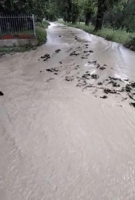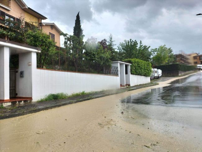 Poco prima delle 17 la pioggia è cessata e l’acqua si sta ritirando dalle strade lasciando però dietro di sé fanghiglia e ghiaia.
