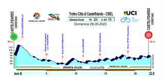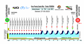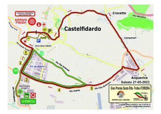 La gara si sviluppa su due circuiti, di cui il primo pianeggiante di km 5,9 da ripetere 14 volte con ampie carreggiate che presentano diverse rotatorie. La corsa entra nel secondo circuito ondulato di km. 12,900 da ripetere 7 volte che comprende nel finale una salita di km. 2 con una pendenza max del 8 % che porta al traguardo di via IV Novembre a S. Agostino. I ciclisti dovranno coprire in totale di Km 174,200 in un percorso adatto agli scalatori. Partenza alle ore 13:00 da bivio Querciabella. Arrivo previsto a S. Agostino intorno alle ore 17:00. Il 5° e 6° passaggio sotto lo striscione d’arrivo assegneranno il Gran Premio della Montagna targato CA Presse.