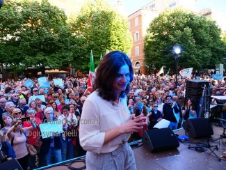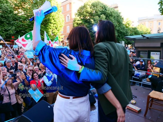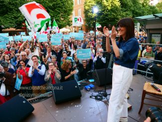 «Sento – ha detto Chantal Bomprezzi che ha parlato per prima – la stessa energia dell’appuntamento alle Muse. Solo che non piove, c’è il sole, siamo in piazza e tutto è più bello. Grazie a tutti quelli del Pd, il mio partito, e della coalizione che si sono spesi in questa campagna elettorale».