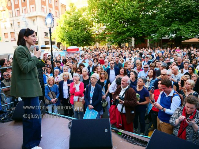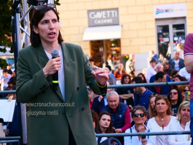 Elly Schlein ha chiuso la campagna elettorale di Ida Simonella nella serata in piazza Roma, davanti a centinaia di persone. La segretaria nazionale del Partito Democratico ha ricordato a tutti i motivi per cui, secondo lei, si dovrebbe votare centrosinistra e non centrodestra. Diritti civili, Sanità, fondi Pnrr ed evitare che Ancona sia una bandierina della filiera, tra i principali temi toccati dalla leader Dem.