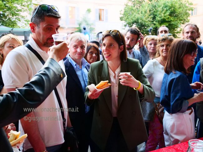 La segretaria è andata avanti a parlare degli avversari: «La destra non capisce che la migliore storia d’Italia è quella inclusiva, che non lascia indietro nessuno. I bambini nelle scuole non sanno cosa sia il razzismo, non lo capiscono. E poi cosa hanno contro la comunità Lgbt? Perché devono discriminare? Noi invece crediamo molto nella coesione delle comunità e Ancona è una grande comunità. Perché, ve lo dico, preferisco scontrarmi e confrontarmi in coalizione ogni giorno che vedere la destra al Governo. Una destra nazionalista che non sa dire che la Costituzione è antifascista e colpisce sempre le fasce più deboli della società. Adesso – conclude il suo intervento – tocca a voi. Convincete a votare Simonella ogni persona che conoscete. Forza Ida, Viva Ida».