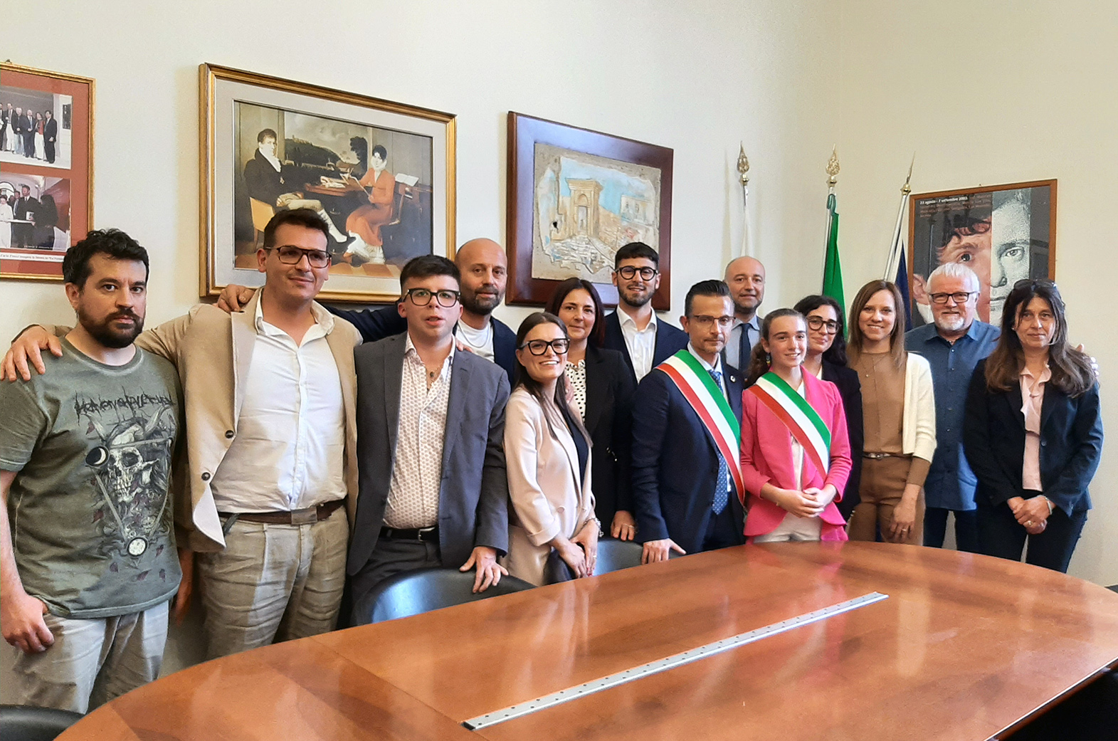 Consoli ha voluto così rendere partecipi e protagonisti a livello amministrativo tutti gli otto consiglieri eletti della lista “Insieme per i Cittadini”, di cui quattro con incarichi assessorili. Perfettamente rispettata la rappresentanza di genere, con quattro uomini e quattro donne. L’età media è meno di 36 anni. D’altronde i due consiglieri più votati, Trillini con 240 preferenze e Mazzarini con 216, sono due ventisettenni. I consiglieri di minoranza sono Leonardo Guerro, Giovanni Perticaroli, Silvia Badiali e Sandro Grizi. La seduta di insediamento, che ha visto anche il giuramento del sindaco, sottolineato dalle note dell’Inno d’Italia, cantato da molti dei presenti, si è svolto in un clima di emozione e di partecipazione da parte dei cittadini che gremivano l’aula del Municipio. A portare un suo saluto è stata anche la sindaca del Consiglio comunale dei ragazzi Valentina Pasquinelli.