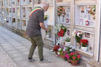 2 Giugno: Il sindaco di Barbara Riccardo Pasqualini depone il mazzo floreale sulla tomba di Noemi Bartolucci, morta a 17 anni durante l’alluvione del 15 settembre 2022