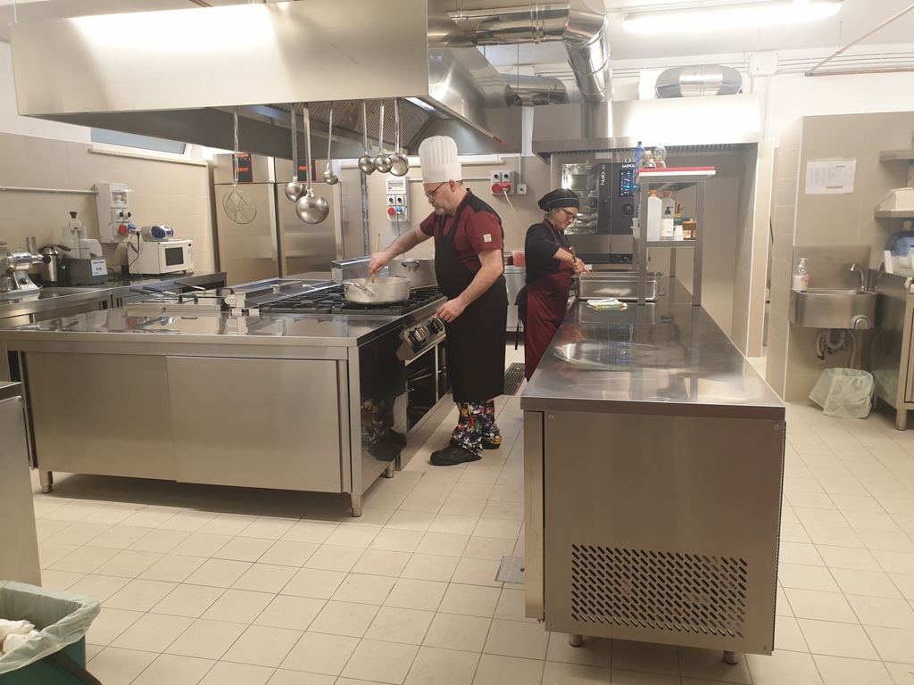 Gli ospiti sono infatti accolti in una prima sala con servizi e accedono poi alla grande sala da pranzo (grande circa 250 mq, può ospitare fino a 200 persone), dove è sistemato un banco self-service comunicante con una efficiente cucina industriale. La sala, illuminata e riscaldata, è dotata di un maxischermo tv con collegamento a Internet. Nei locali ci sono anche i servizi igienici e il magazzino per conservare gli alimenti. I cibi sono sempre freschi e preparati al momento. Nella mensa non viene dato solo il pasto, è un luogo di incontro dove ognuno viene chiamato con il proprio nome e il cibo viene consumato nella relazione con chi lo prepara, lo serve, lo condivide nella fraternità. «Tutto ciò che noi riceviamo è dono di Dio – dichiara Mons. Angelo Spina – e quando il cibo lo condividiamo si moltiplica e diventa benedizione».