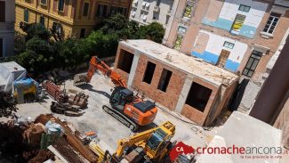 Era infatti il 20 febbraio del 2023 quando l’ex sindaca Valeria Mancinelli, assieme all’ex assessore ai lavori pubblici Paolo Manarini e a molti altri componenti la precedente Giunta comunale, alle 8 in punto tagliarono il nastro tricolore sancendo il ritorno nelle rispettive classi per centinaia di bambini. Ciò dopo anni di attesa dovuti ai lavori resisi obbligatori per far tornare il plesso scolastico agibile e in regola in base alle più recenti norme antisismiche. Tutto questo con un’importante eccezione sin da subito messa in evidenza dall’amministrazione stessa: la palestra. I suoi lavori, visto che la ricostruzione era ex novo, si sarebbero prolungati ancora per un po’. E così è stato. Mattone dopo mattone, un passaggio tecnico dopo l’altro, la palestra ha iniziato a prendere forma con la manovalanza impegnata «Fino ad aprile» giurano alcuni testimoni.