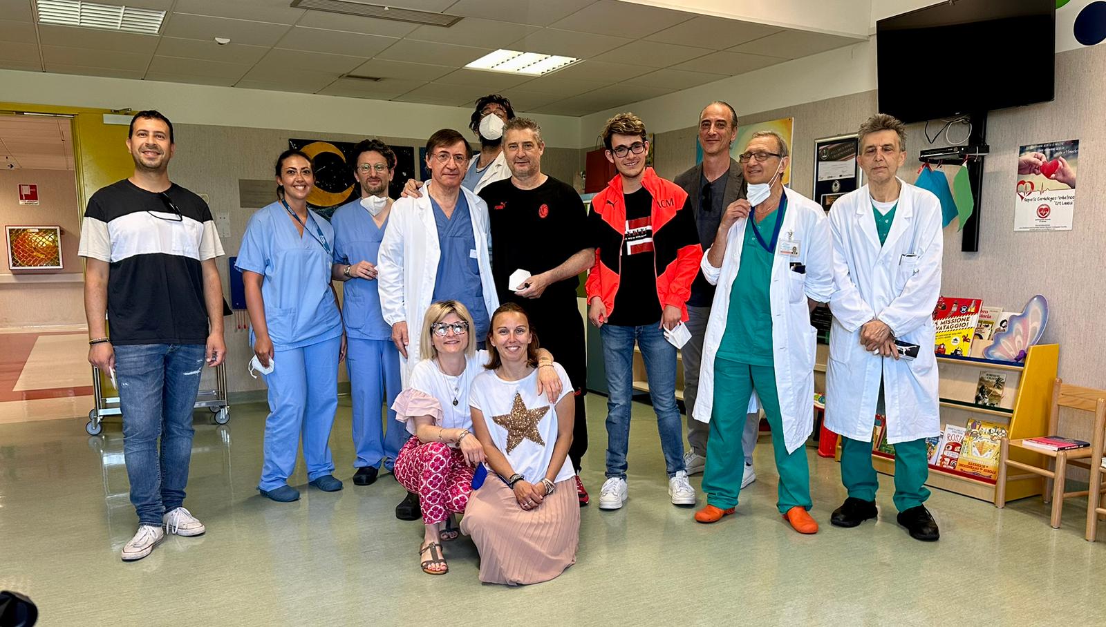 Daniele Massaro aveva, tramite videochiamate, parlato con il piccolo, incoraggiato a non mollare e promesso che presto lo avrebbe incontrato. Ed oggi ha mantenuto la sua promessa, il fuoriclasse venuto da Milano, non solo ha incontrato il suo speciale tifoso ma ha portato gadget e soprattutto sorrisi a tutti i piccoli cuori birichini ricoverati. «È stato un momento davvero emozionante poterlo accogliere all’interno della sala giochi e poi all’interno del reparto per fare una piacevolissima sorpresa a tutti i piccoli ricoverati e alle mamme. Oggi abbiamo avuto la fortuna di conoscere un vero campione che porteremo nel nostro cuore e sicuramente lui potrà fare lo stesso con il ricordo di quello che ha visto e vissuto oggi con il primario, con il personale della Cardiologia e cardiochirurgia pediatrica e l’associazione un battito di ali».