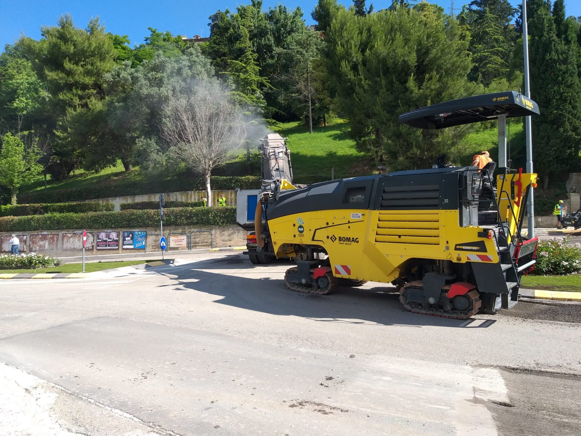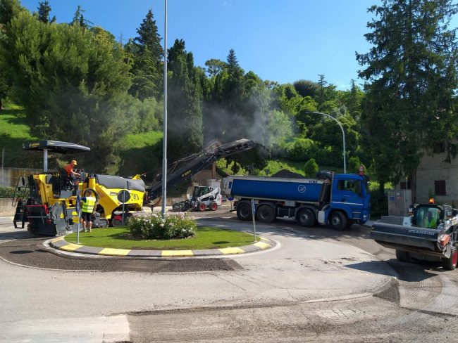 Il cambio di viabilità verrà disposto da lunedì prossimo per dare il tempo alla Osimo Servizi di modificare la segnaletica stradale. «Vorrei assicurare infine che, con i fondi arrivati dal Pinqua e coordinati da Invitalia, circa 200.000 euro, copriremo invece lo spese per la parte architettonica del progetto, l’abbellimento della porta della principale porta d’accesso a San Marco» sottolinea il sindaco di Osimo. Questa mattina è stato anche svolto un sopralluogo alla rotatoria del Crocifisso dove sono partiti ieri i lavori per l’asfaltatura della carreggiata stradale.«La ditta al lavoro ci assicura che, salvo contrattempi, entro stasera verrà terminato l’intervento e già da domattina la polizia locale potrà riaprire al regolare flusso viario. Il cantiere si sposterà poi alla rotatoria di Largo Vittorio Veneto a Borgo San Giacomo e poi a Largo Trieste davanti ai Tre Archi per sistemare altre due rotatorie per le quali era ormai indispensabile intervenire» conclude Simone Pugnaloni.