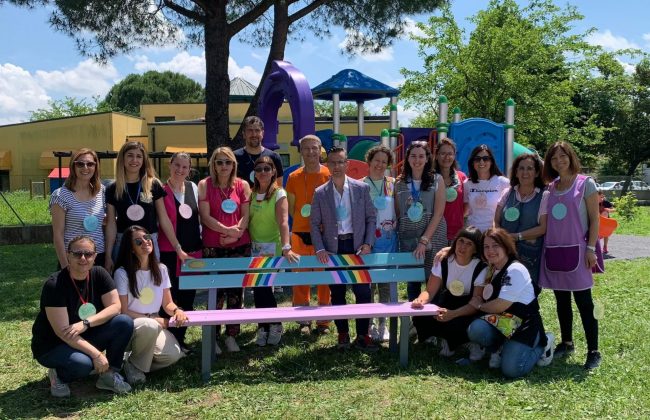 È spuntata la “panchina della gentilezza” alla scuola dell’Infanzia “Rodari” di Moie. Una seduta che nessuno usava più ed ecco l’idea: un giorno i bambini, dopo aver fatto un viaggio attraverso il valore e l’importanza della gentilezza insieme alle loro insegnanti, hanno pensato di prendersene cura e donarle una nuova vita. Così, attrezzati di colori, entusiasmo ed allegria hanno deciso di trasformarla nella loro “panchina della gentilezza”, con un viola splendente come sfondo, un arcobaleno che rappresentasse la pace e una targa che ne ricordasse il suo valore.