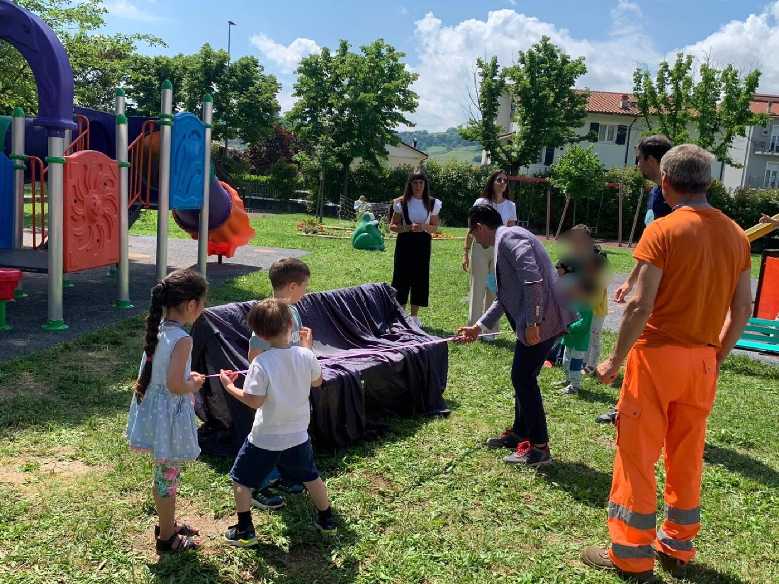 Nei giorni scorsi è stata organizzata una piccola cerimonia di inaugurazione nel giardino della scuola alla presenza del sindaco Tiziano Consoli e del dirigente scolastico Vincenzo Moretti che ha aiutato i bambini a realizzare il progetto. A festeggiare con i piccoli e le autorità sono state anche tutte le insegnanti e le collaboratrici della scuola Rodari. Il taglio del nastro è stato sottolineato anche dalle canzoni animate dai bambini.