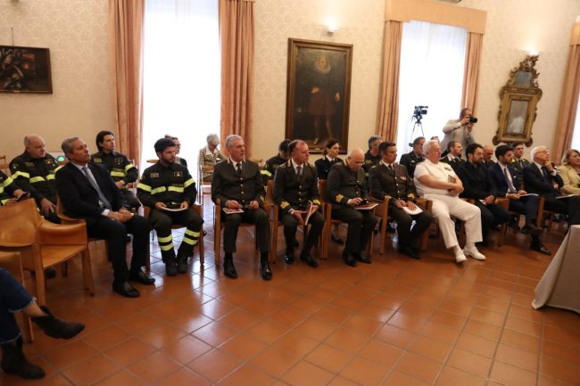 Alla cerimonia erano presenti anche il prefetto di Pesaro Urbino, Emanuela Saveria Greco, che ha ringraziato tutti i soccorritori evidenziando la forza e la capacità del lavoro di squadra.