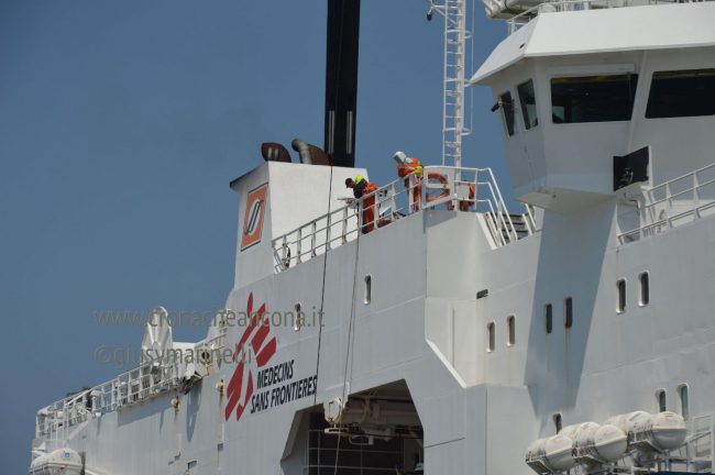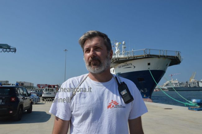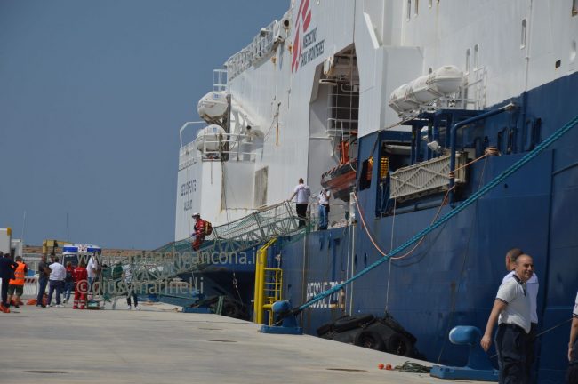Alle ore 14 di oggi pomeriggio la nave umanitaria di Medici senza frontiere, ha attraccato alla banchina 22 dove ad attendere i naufraghi, tutti adulti eccetto un minore non accompagnato, erano presenti gli operatori del 118, dell’Ast Ancona e dell’Usmaf, i primi a saliti a bordo per una ispezione preliminare finalizzata a valutare le condizioni di salute delle persone. Al porto c’erano anche i vigili del fuoco, la capitaneria di porto, i volontari della protezione civile, con quelli della Croce Rossa, dell’Anpas e della Caritas, i funzionari dell’Autorità di sistema portuale del mare Adriatico centrale e del Comune di Ancona, l’Unhcr, l’Esercito, il Comando scuola della Marina Militare. Era sul posto soprattutto il prefetto di Ancona Darco Pellos, che anche questa volta, come nei precedenti sbarchi di migranti, ha coordinato le operazioni di accoglienza, seguendo la traccia della esperienze analoghe già collaudate nei mesi di gennaio e febbraio 2023.