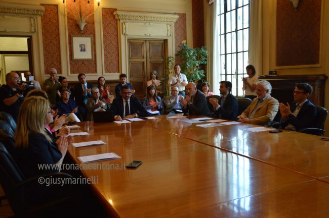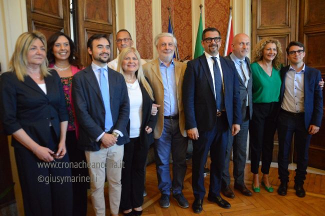 Aggiornamento delle 13,22 – Il sindaco di Ancona, Daniele Silvetti, ha presentato poco fa a palazzo del popolo i componenti della giunta comunale che lo affiancheranno nell’azione amministrativa di governo. Il vicesindaco sarà Giovanni Zinni. Gli otto assessori? in ordine alfabetico Antonella Andreoli, Marco Battino, Daniele Berardinelli, Anna Maria Bertini (cosí come richiesto da Carlo Ciccioli), Manuela Caucci, Angelo Eliantonio, Orlanda Latini e Stefano Tombolini. Un ruolo con deleghe che verrà definito nei prossimi giorni verrà assegnato a Francesco Bastianelli.