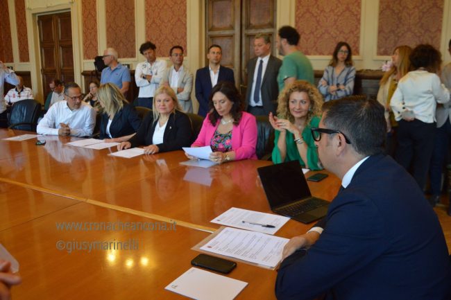 Il nuovo Sindaco spiega anche come mai ci sono volute due settimane per scegliere la propria squadra: «Ho sempre detto sin dalla campagna elettorale che non è più tempo di uomini e donne sole al comando e che avrei fatto della partecipazione e della condivisione lo stile di questo governo. Sapete quanto tenga e creda alla politica e alla funzione dei partiti e delle civiche e con esso mi sarei misurato. Sicuramente è il metodo e l’approccio più difficile perché serve tempo, pazienza e capacità critica. Questa non è una caserma – incalza l’avvocato – non ci sono dei soldati. Ci sono delle persone non degli yes man. Ogni assessore ha la propria storia, la propria esperienza, hanno senso di appartenenza e si sono assunti la responsabilità di governare questa città assieme a me». Sempre lui spiega certosinamente qual è stato il suo metodo di lavoro a chi l’accusa di essersi fatto ‘dettare la linea’ dai partiti e dalle loro correnti: «Ho chiesto ai partiti di presentarmi più nominativi. Oggi è il 16 di giugno e direi che aver compilato la giunta in 2 settimane sia un tempo fisiologicamente accettabile. È completamente nuova non ha continuità con nessun’altra. L’esercizio di condivisione è complesso e merita tempo ma lo adotteremo anche con i cittadini. Andremo sul territorio, lo ascolteremo» facendo notare anche come «Sin da subito mi sono dovuto occupare delle emergenze della città, vedi lo stato di AnconAmbiente e quello economico patrimoniale di Conerobus. Poi mercoledì sapete dove ero (al funerale di Silvio Berlusconi, ndr) insomma, due settimane non sono molte».