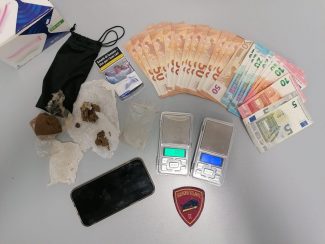 A questo punto, visti i precedenti, si è deciso di procedere con una ispezione domiciliare a seguito della quale sono stati trovati ulteriori 55 grammi di hashish, tenuti in una scatola di medicinali antinfiammatori, circa 900 euro in contanti ritenuti provento di spaccio e due bilancini di precisione.