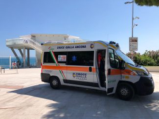 Un’ambulanza della Croce Gialla al Passetto (Archivio)