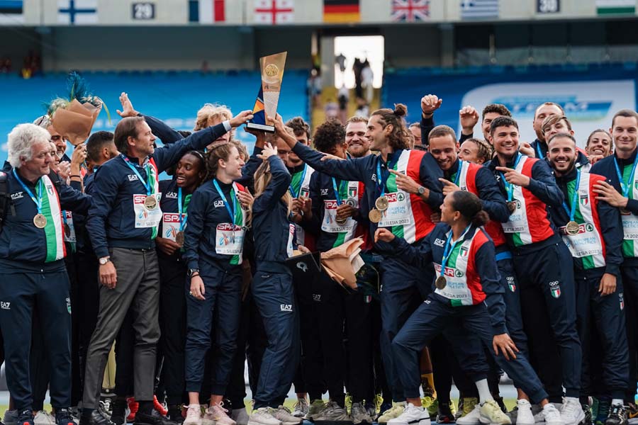Una giornata da incorniciare per gli azzurri che sono saliti sul gradino più alto del podio continentale. Non c’è stata solo la vittoria di Tamberi a Chorzow in Polonia. La squadra degli italiani ha trionfato al termine di tre giornate di confronti di straordinaria intensità. Nella sessione conclusiva di gare, il secondo successo azzurro (sette in totale nella manifestazione), è arrivato grazie a Zane Weir nel getto del peso (con un eccellente 21,59), secondo posto per Larissa Iapichino nel salto in lungo (6,66, vento nullo). Terzi per Filippo Tortu nei 200 metri (20.61, v. -1.3 m/s) e Yeman Crippa nei 5000m (13:34.29). La classifica finale premia l’Italia (426.5 punti) con largo margine sulla Polonia (402.5, quindi ben 24 lunghezze di distanza). terzo posto per la Germania, quarto per la Spagna, quinto alla Gran Bretagna.