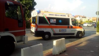 Messasi in moto la macchina dei soccorsi, in via Basilicata a Falconara sono accorsi i vigili de fuoco, la Croce Gialla di Ancona e l’automedica.
