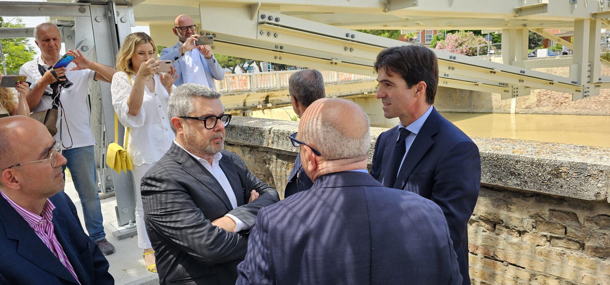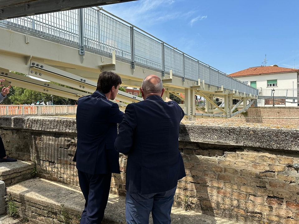 Durante il sopralluogo, il presidente Francesco Acquaroli ha evidenziato che «è pronta e aprirà nei prossimi giorni al transito la passerella ciclo pedonale provvisoria, al centro di Senigallia all’altezza del Ponte Garibaldi, che nei prossimi mesi sarà demolito e ricostruito interamente, rialzato rispetto all’attuale. Si tratta di un intervento di circa 4 milioni, che insieme al dragaggio del fiume iniziato nei giorni scorsi dalla foce, a pochi metri di distanza, rappresenta un altro importante lavoro per la ricostruzione e la mitigazione del rischio. Sono oltre 100 gli interventi di ripristino realizzati in questi mesi lungo il Misa, il Nevola e il Cesano ma anche nel comprensorio del Catria, nei prossimi giorni continueranno ad esserne avviati altri». Quanto al nuovo ponte Garibaldi, la Regione conta entro otto-dieci mesi di arrivare alla soluzione definitiva del problema con la realizzazione della infrastruttura.