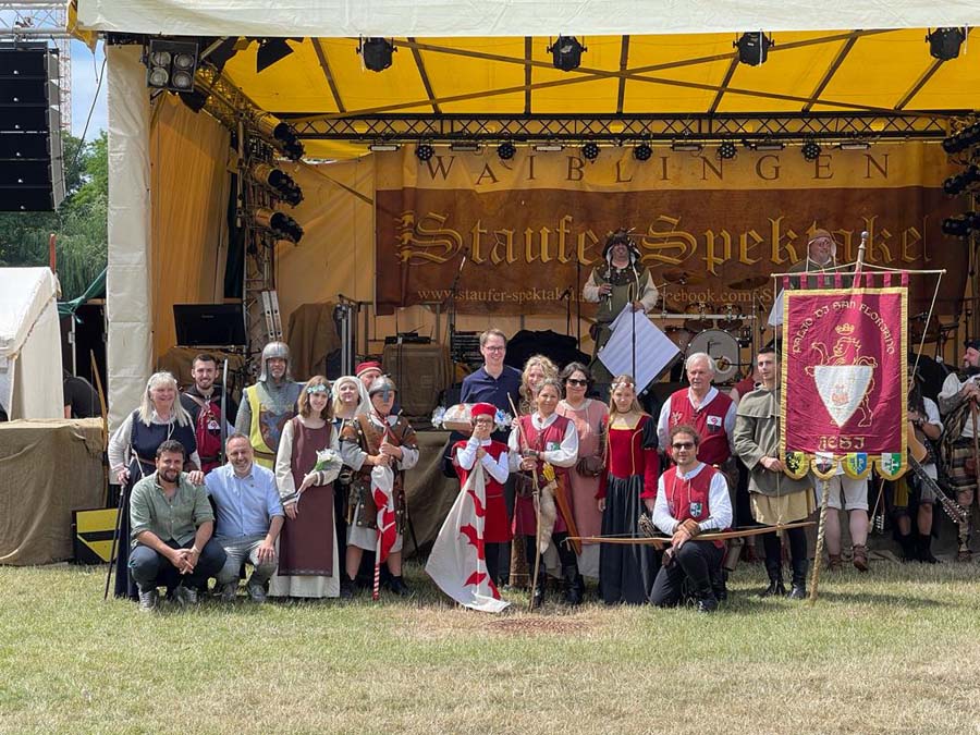 Un momento della visita di assessori e rappresentanti dell’ìente Palio di San Floriano alla festa medievale di Waiblingen